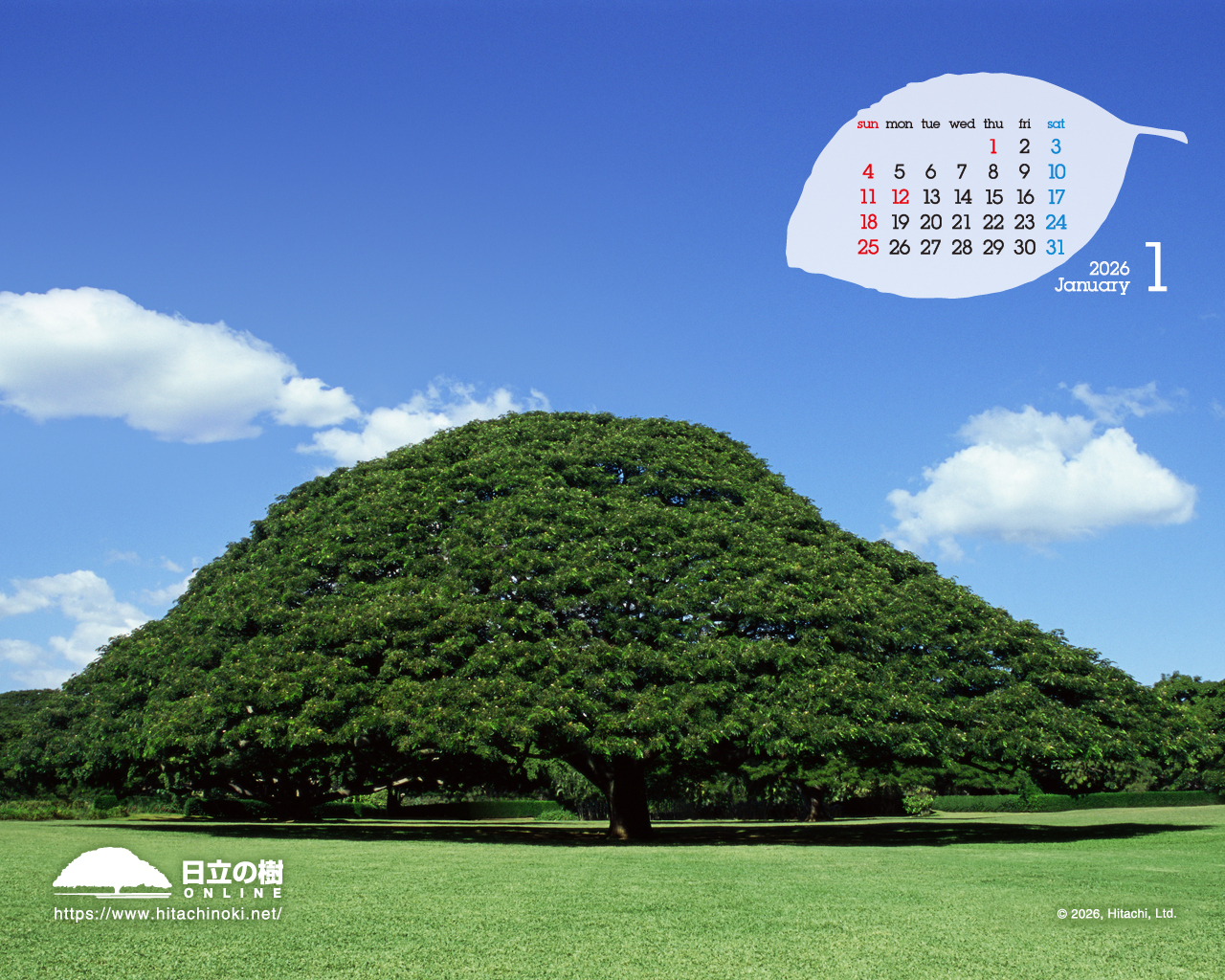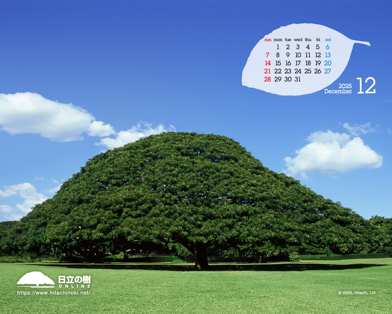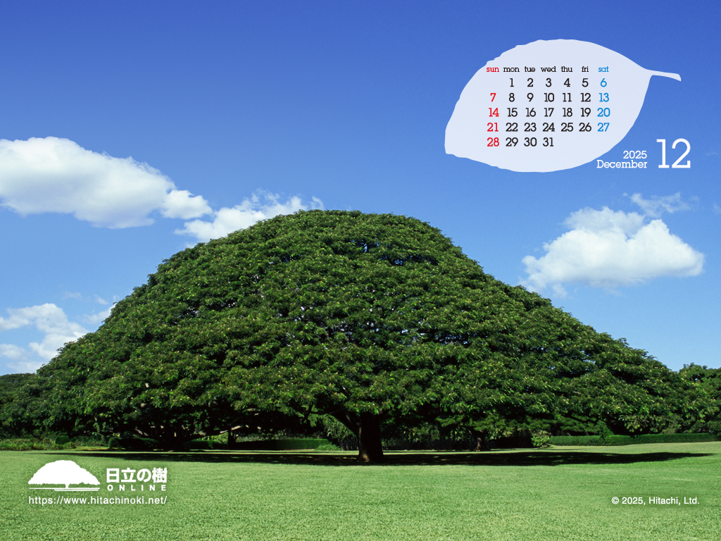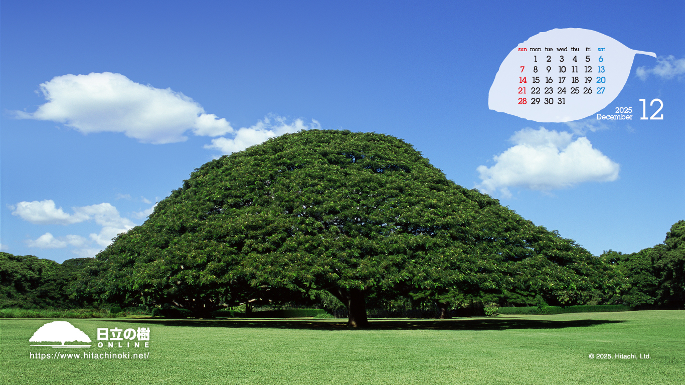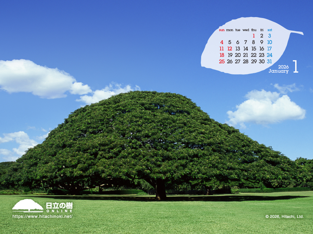 「日立の樹」の壁紙です。カレンダー付き壁紙を毎月更新しています。