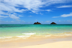 まずは、定番中の定番、パウダースノーのような白砂とエメラルドグリーンの海が美しい「カイルア・ビーチ」。